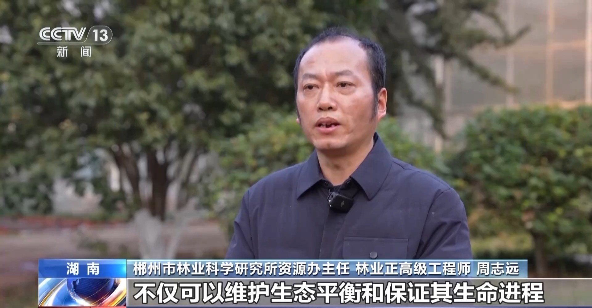 湖南郴州市林业科学研究所资源办主任 林业正高级工程师 周志远:实施古树幼树的繁育和栽培,不仅可以维护生态平衡和保证其生命进程,还为新品种选育提供材料来源,是对孑遗、濒危古树保护及利用的有效手段。